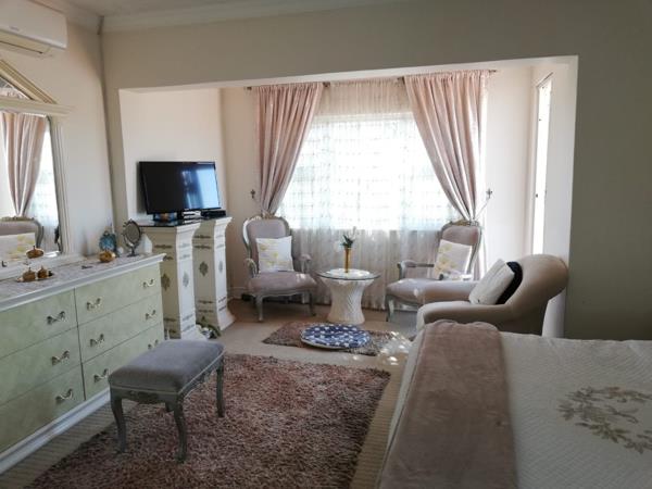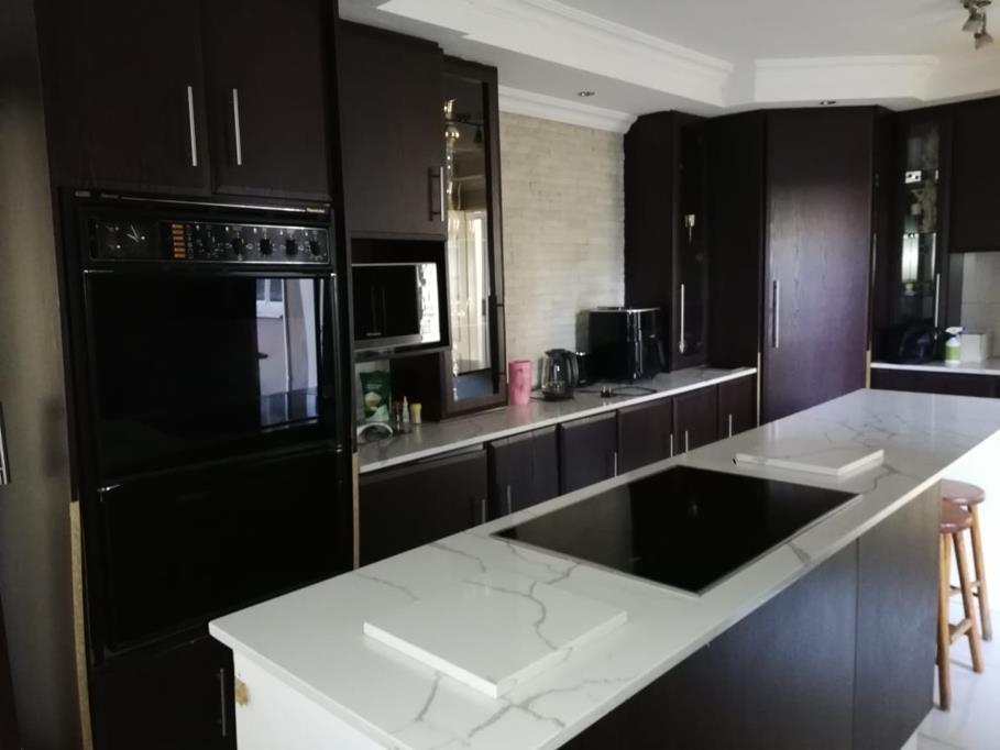 Upon entry the luxurious ambience welcomes you to porcelain tiles, large living areas, high ceilings, complete with beautiful wrought iron and steel staircase rail which leads to the first floor where the pajama lounge invites after an exhausting day. Two entrances to the kitchen serves both family and visitors or clients.