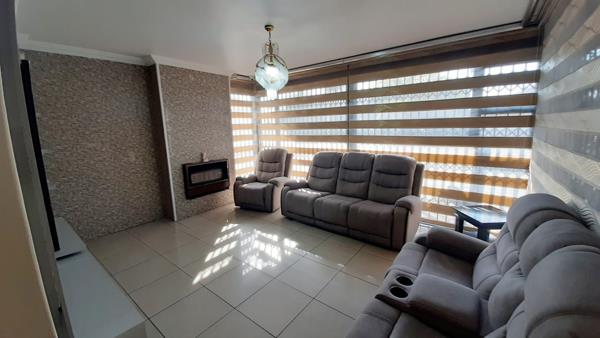 An in-tandem garage with remote operated doors accommodates two cars and a third can be parked in the enclosed entertainment area if the need arises. The home is secured by way of an alarm system with 16 cctv cameras and trelligates. All window frames are made of low maintenance aluminium. Please note the home is sold minus the inverter.