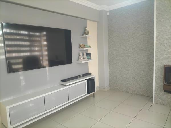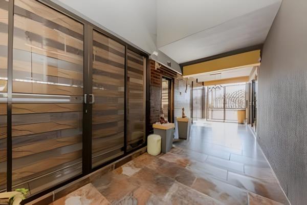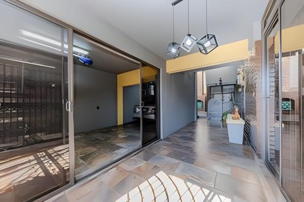 Designed for all-weather gatherings and entertainment, the home features large aluminium sliding doors that open into a stylish lounge and dining area, seamlessly flowing into a modern kitchen with ample built-in cupboards and a spacious scullery.