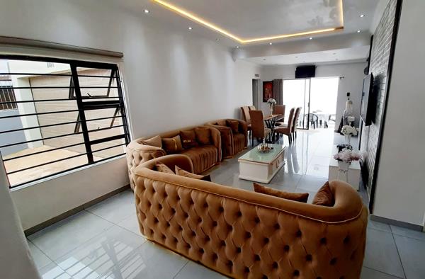 This modern home has stylish fixtures and fittings which adds a touch of flair to it. It features porcelain tiled floors throughout and is lit by downlighters on its ceilings. The open plan lounge features a dropped ceiling with perimeter strip lighting and is part of an open plan area having a modern kitchen and a dining room. This home can easily accommodate a small to medium sized family, having 3 bedrooms all with BICs with sliding doors.