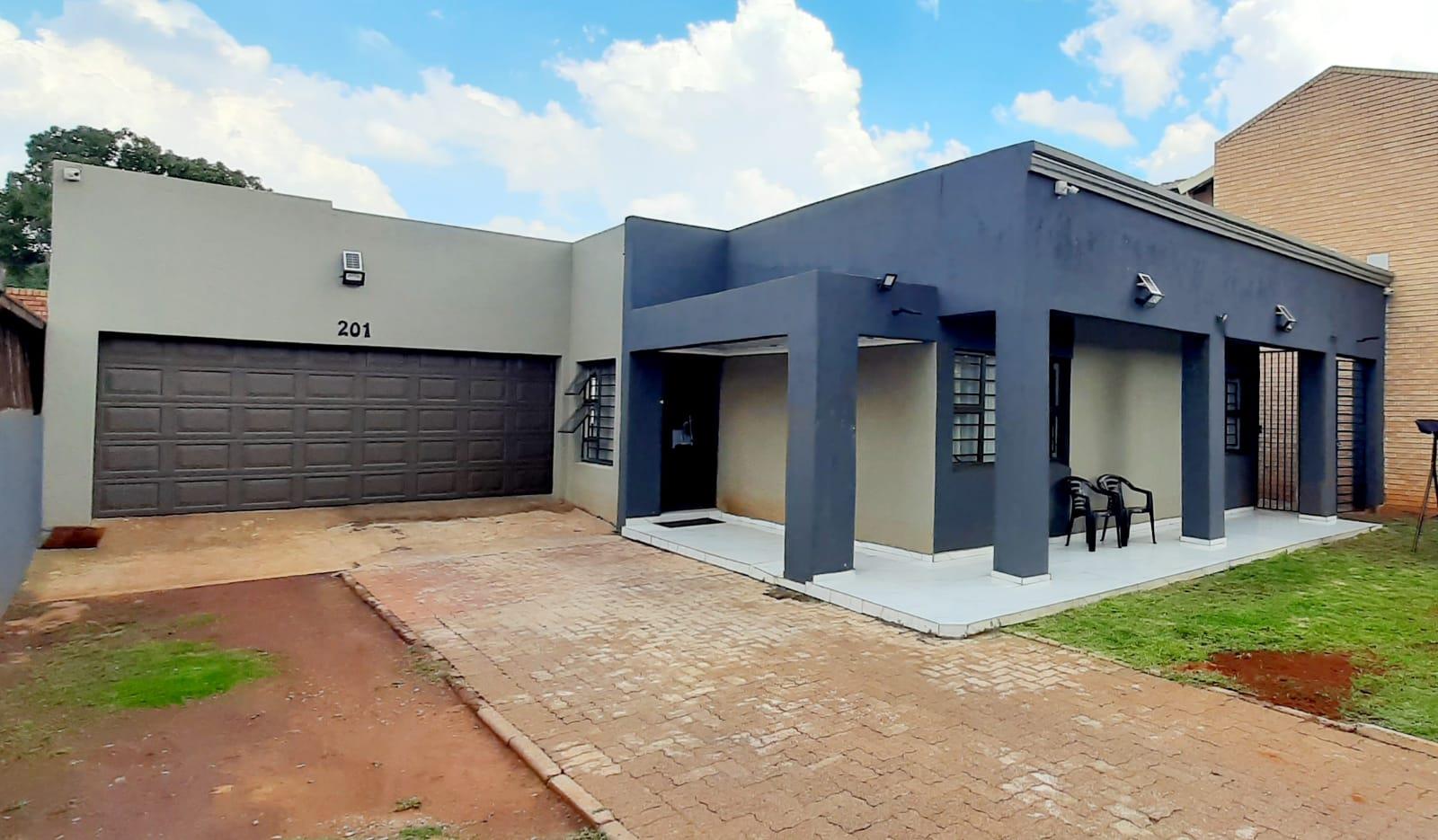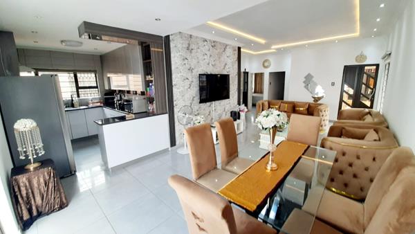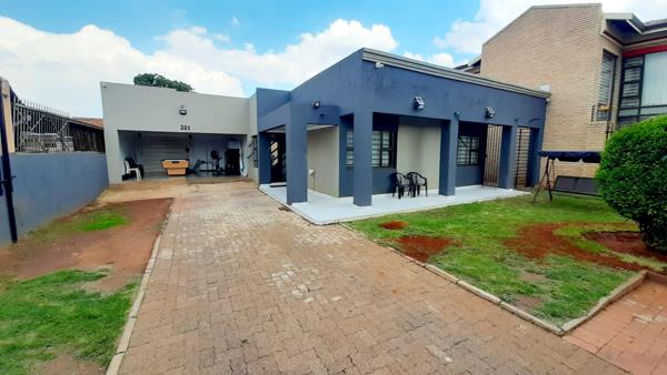 Welcome to this recently renovated family home located on a main road of extension 3 of Lenasia, close to most amenities. The home is accessed via a motorized gate and secured by a wall with fencing. The home has a double garage with a motorized door and the driveway adjacent to the garden can accommodate two more cars. Another garage door in the double garage opens up to a driveway accommodating yet two more cars.