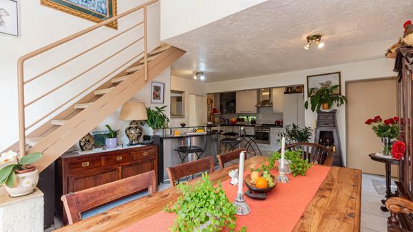 The ground floor is an open concept modern gourmet kitchen, lounge, and dining room with sliding doors onto a patio with a water wall feature overlooking a sparkling swimming pool in a simply beautiful garden, also home to a private jacuzzi. The double 2nd bedroom and 3rd guest bedroom, currently used as a snug, are also located on this floor and serviced