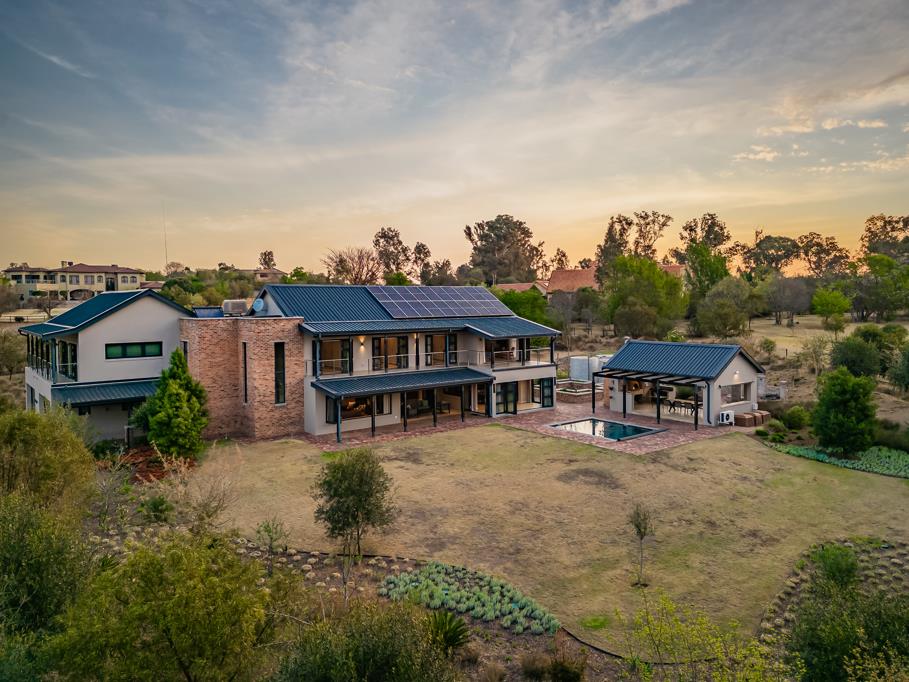 Discover a modern, north-facing country retreat that epitomizes luxury and sustainability in the heart of Blair Atholl Golf & Equestrian Estate. This 5-bedroom haven features state-of-the-art solar and water harvesting systems on a large, private corner stand.
