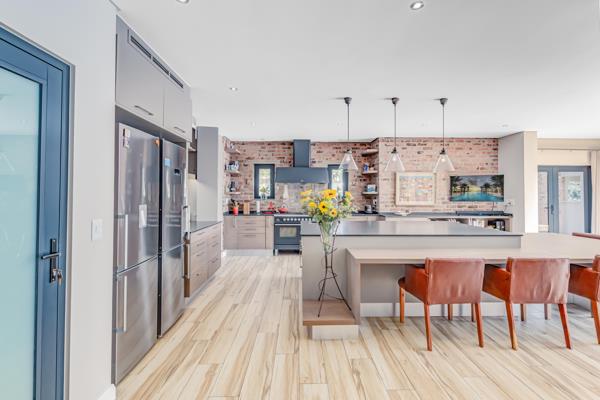 Outside, indulge in leisure with a perfectly situated swimming pool adjacent to an entertainment oasis complete with a braai, pizza oven, and cozy fire pit lapaa perfect setting for memorable gatherings amidst lush gardens.