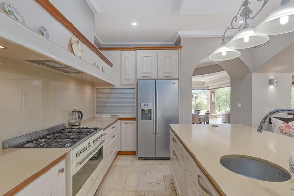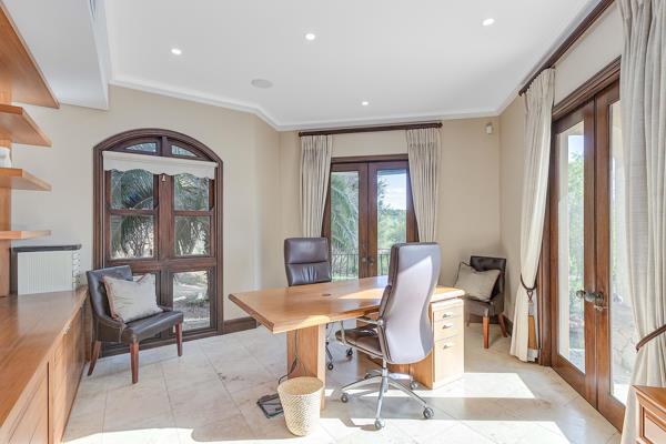 Beautiful solid wood doors, stairways, travertine floors throughout, bathrooms with exquisite stone finishes, a landscaped garden and a bright and sunny conservatory style room looking onto a private garden for winter days and opens up for cool summer days. The home has some of the best views Blair Atholl has to offer and the master bedroom is one of the most beautiful in the estate with an upstairs jacuzzi to take in the views. In addition to the master, two bedrooms are also upstairs with a jack & jill bathroom and two additional bedroom suites are downstairs. The kitchen is welcoming with a large pantry and separate laundry & scullery and also leads onto the large garage with additional space to park a golf cart. The property has BreezeAir installed for cool days, a central vacuum system and WIFI installed. For backup, there is a water tank on the property, a solar water geyser and inverter installed which can be converted into a solar system.