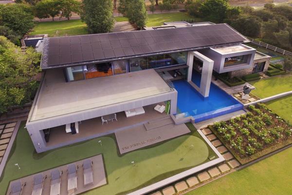 Modern contemporary farmhouse. The ultimate addition to our Exclusive Mandate luxury brand collection. Nico Van Der Meulen Architects - Best Project 2015. This double storey home boasting nearly 767 m² under roof has been created with modern clean lines and natural materials, delivering a serene and tranquil ambiance.With unrestricted views of the countryside, the expansiveness of this home is certain to catch your attention as you approach the house.