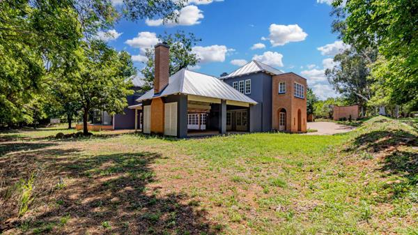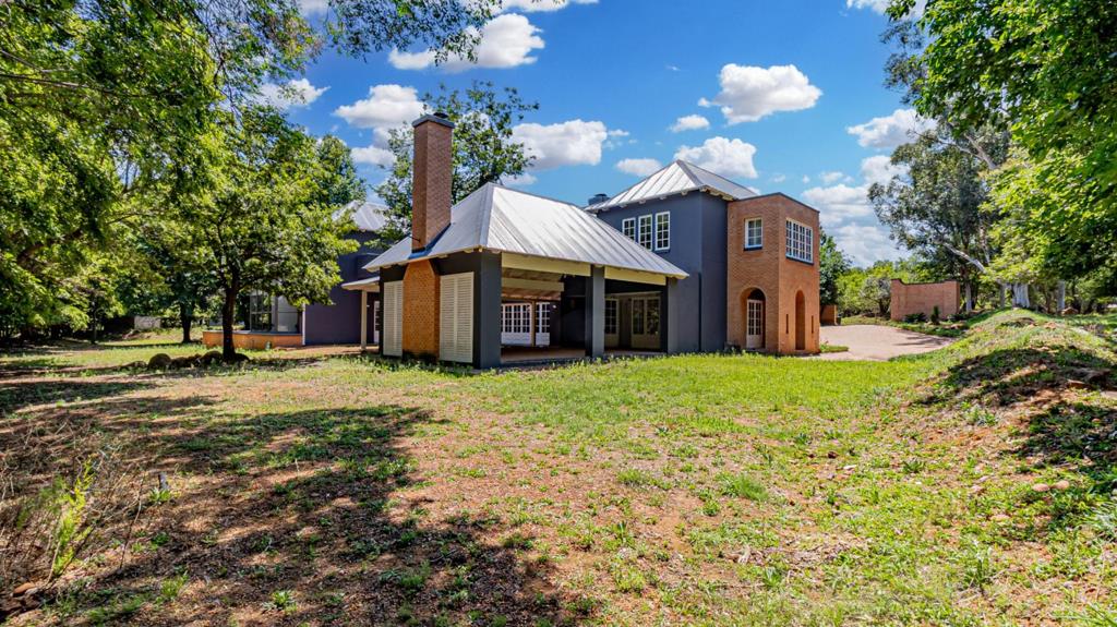 Upstairs, four additional bedrooms, each with ensuites, await, all featuring balconies and walk-in closets. Outside, two garages, a spacious patio with a built-in braai, and the serene backdrop of the creek complete this exquisite property.