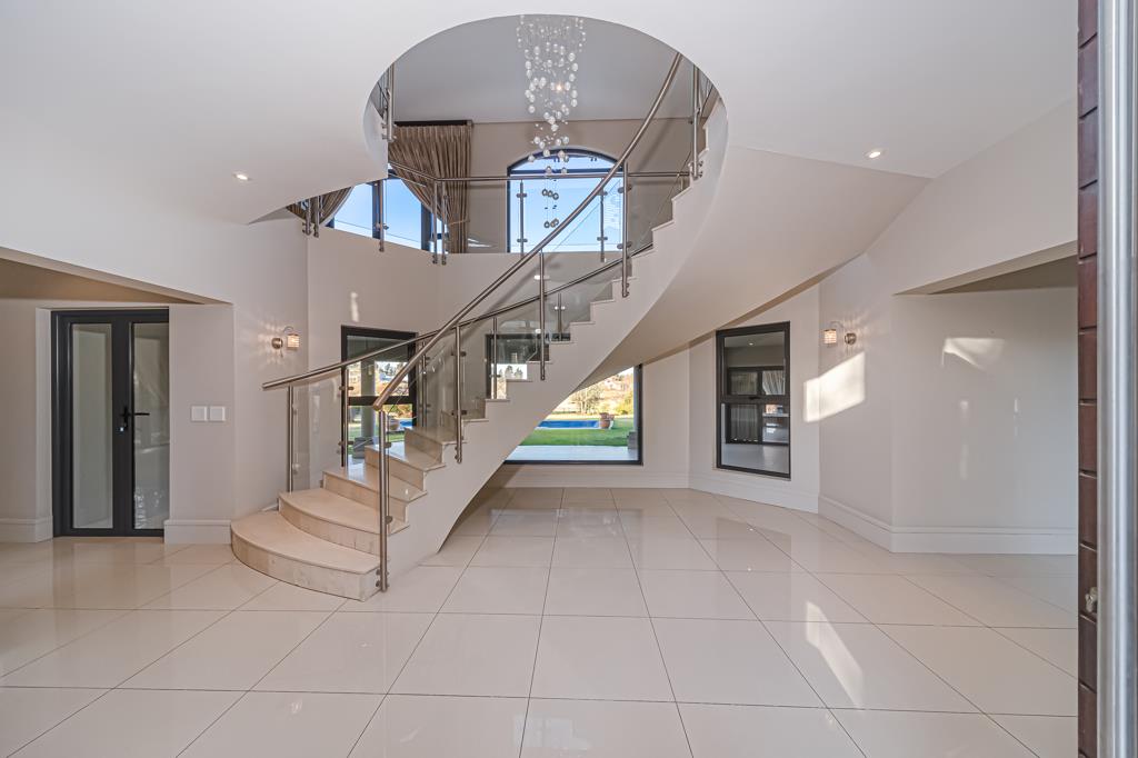 A beautiful prime location, spacious 800+sqm 5 bedroom home on the Crocodile River and golf course is available to welcome a new family. A central spiral staircase with gorgeous pyjama lounge and four bedrooms upstairs and additional guest bedroom and office or 6th bedroom downstairs completes the bedrooms. The kitchen is large with light flowing throughout and the laundry/scullery area is a great size and between the two there is plenty of storage.