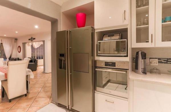 Throughout the home, you''ll find LED downlights and new cornices, all recently painted in 2021. A wall was removed in the passage to create an open-plan living area that floods the home with light. The downstairs bedrooms have new porcelain tiles, and the lounge is linked to the upstairs bedroom via DSTV. Additionally, the security cameras are linked to the downstairs TV for added peace of mind.
