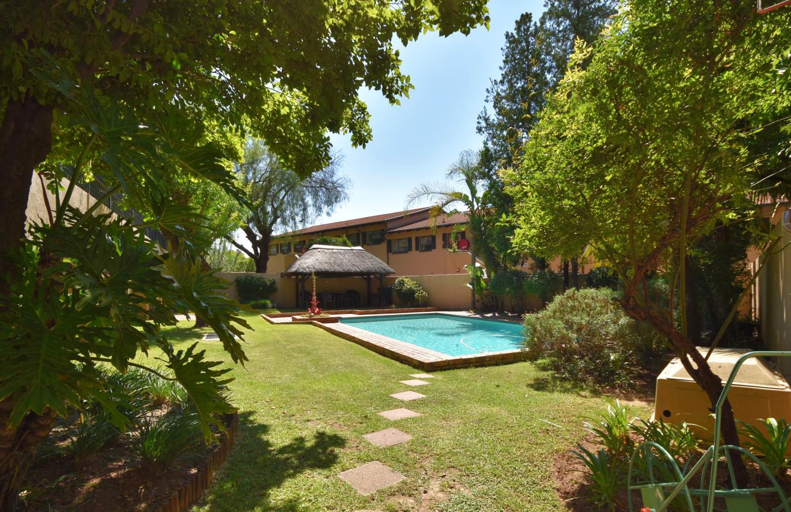 The complex has a sparkling blue pool and a thatched lapa for hot summer days.