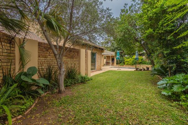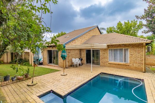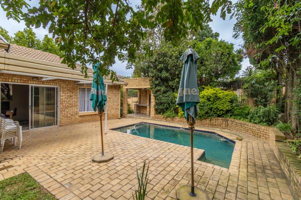 The open-plan kitchen offers a spacious and modern layout, allowing for seamless interaction with the rest of the living areas. The dining room has sliding doors that lead to a covered patio for easy entertainment next to a lovely swimming pool. Adjacent to the pool is a built-in braai area. The lounge sliders opens to the well established garden.