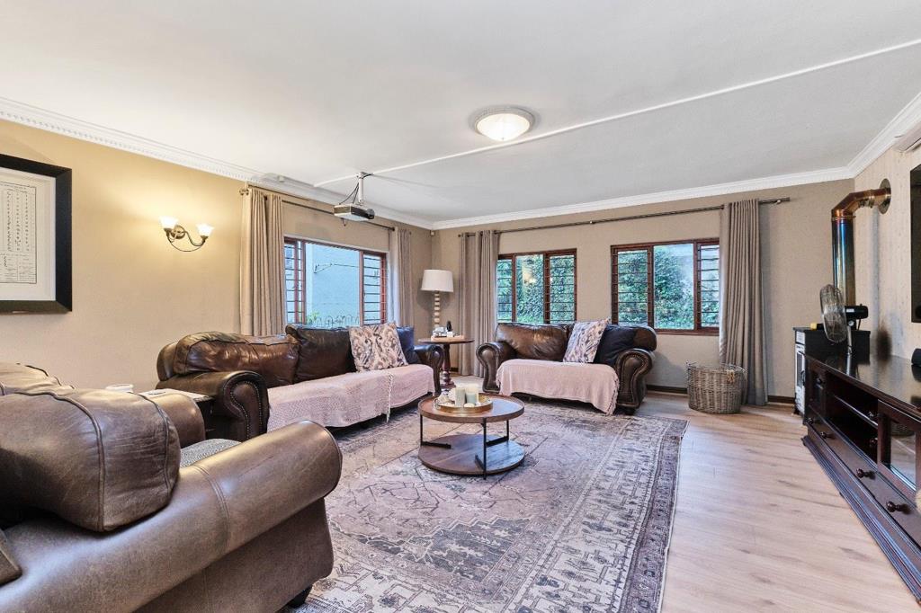 The home''s modern kitchen is a culinary delight, equipped with a separate scullery, space for three appliances, a double fridge, gas hob, and electric oven. Adorned with elegant quartz countertops, it serves as the hub of family life. The living space offers two inviting lounges, one with a cozy fireplace, and a dining room that opens directly onto the patio. A study and a guest loo complete the main level''s accommodations.