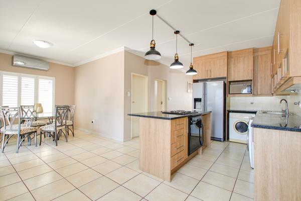 Additional features: Casted staircase. Linen cupboard on landing. Quality light fittings. Trellis security doors to patio. Aluminium window frames. Blinds in dining room as well as 2nd and 3rd bedrooms. Air-conditioner in dining room HC. Heat pump geyser Electricity saving on geyser heating costs. A Heat pump is essentially an aircon in reverse. DSTV Dish. Gutters. Fibre ready. Electricity is pre-paid. Washing line.