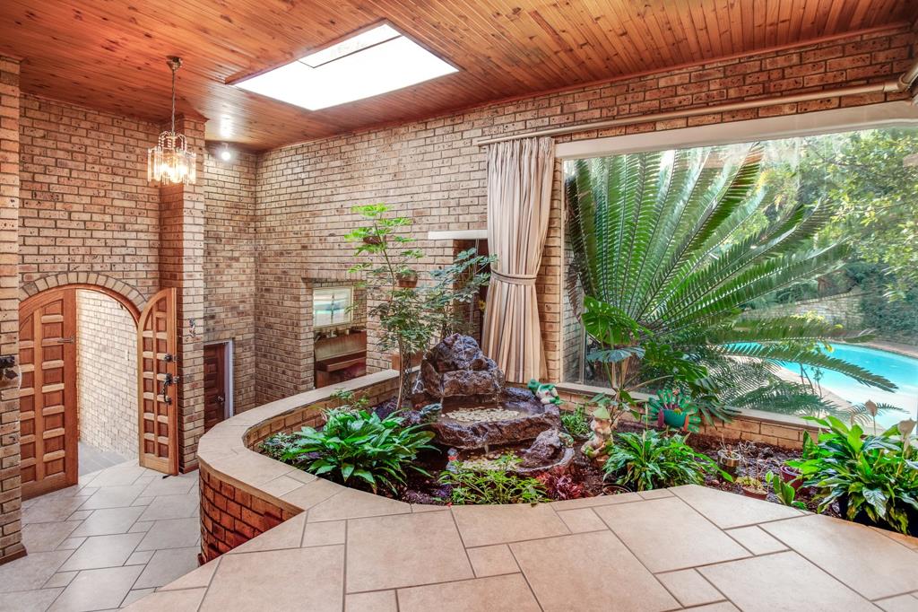 Entrance hall leading past the pond feature to the TV lounge with fireplace