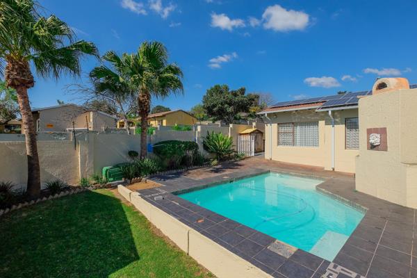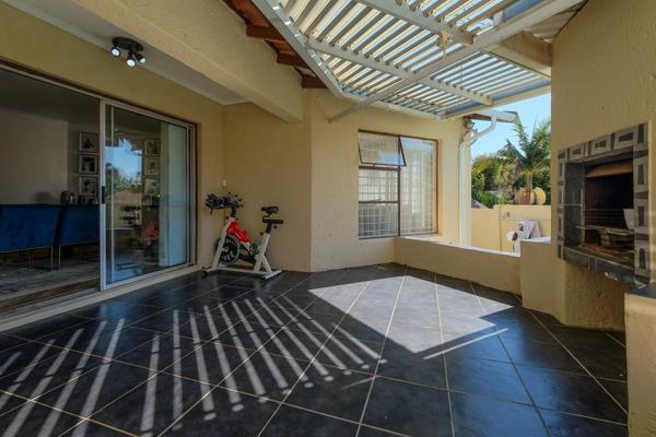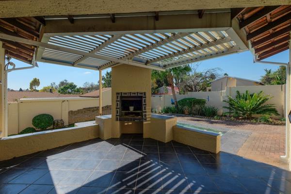 Super secure with what you would expect, ie, alarm, electric fence, beams and CCTV. The property is fully walled on a manageable erf complete with sparkling pool and outdoor covered patio, and a braai area.