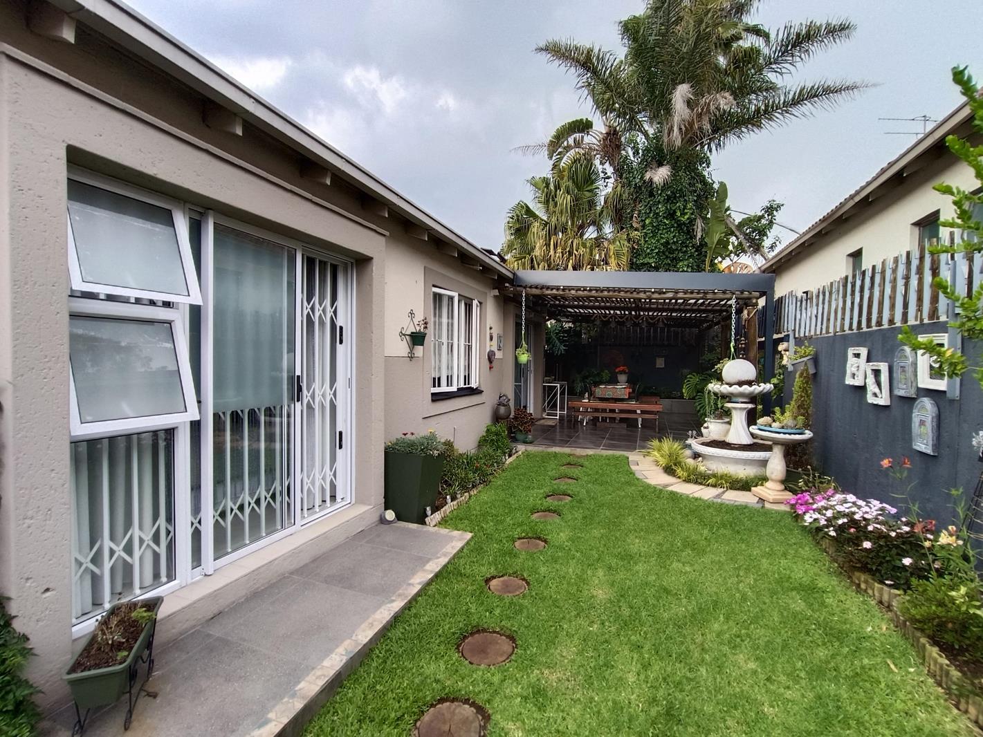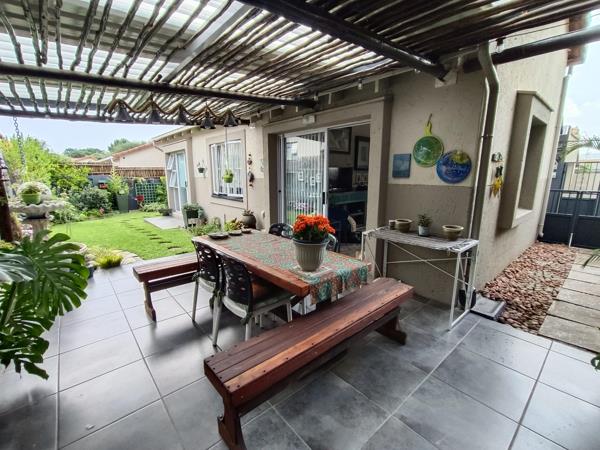 This 2-bedroom, 2-bathroom cluster in one of Bromhofs most sought-after complexes has been maintained with exceptional care and finished with a creative eye, resulting in a space that feels both sophisticated and warmly lived-in. The open-plan kitchen and living area flow effortlessly onto a generous covered patio, overlooking a beautifully manicured private gardenan ideal setting for quiet mornings or relaxed entertaining. The kitchen is equipped with a gaselectric stove combo, providing both convenience and efficiency.