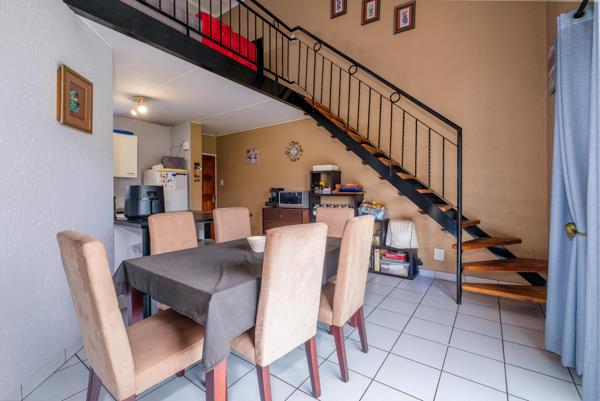 2 beds and full bathroom. Large open plan living area with open plan kitchen and spacious balcony with garden views over the pool and braai area. Large loft could be a 3rd bedroom.