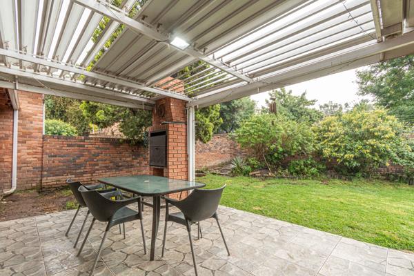The unit features an open-plan tiled lounge and dining area that flows seamlessly onto an undercover patio with a built-in braaiideal for relaxed entertaining. The patio overlooks a generous, private garden, perfect for children, pets, or gardening enthusiasts.
