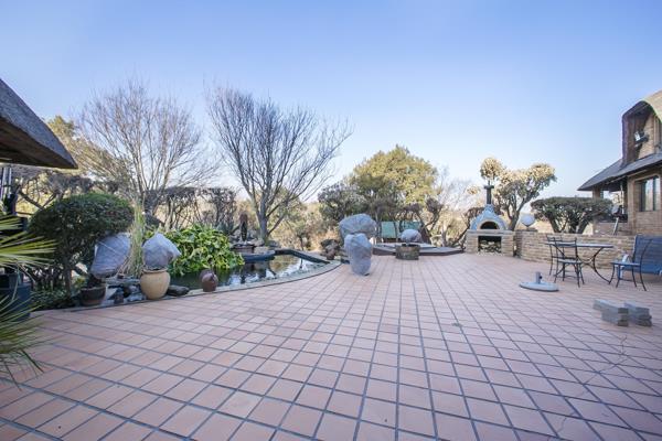 LEVEL 2: Has a welcoming Porte cochere entrance with a feature carved swivel door. Large open plan living areas with a sunken lounge, glass hexagon fireplace and bar lead out to a covered entertainer''s patio with a T.V point that overlooks the heated swimming pool with built in braai, pizza oven jacuzzi, and koi pond. There is also a guest bathroom and linen cupboard. Guest suite with under floor heating and full bathroom that leads out to the Lapa. Superb open plan granite country kitchen with breakfast table, gas hob, walk-in pantry space for a double door fridge and separate scullery.