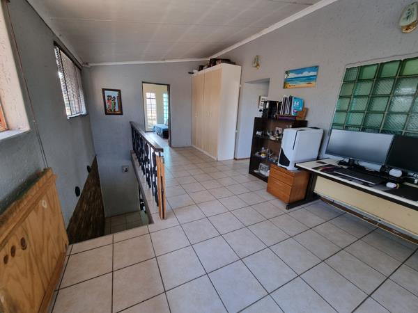 The home is spacious and with the many windows, the homes is light and airy. Downstairs is the living area, kitchen and a guest bathroom. A fireplace will warm up the home in winter. While in summer the doors open onto a patio and look onto the property with trees and birds. Upstairs are the 3 bedrooms and a pajama lounge. Again with large windows. Two bedrooms open onto the patio. Both bathrooms upstairs are full bathrooms. The main bedroom has a bathroom en suite. The third bedroom is tiled with large windows.