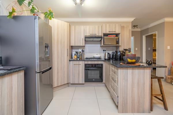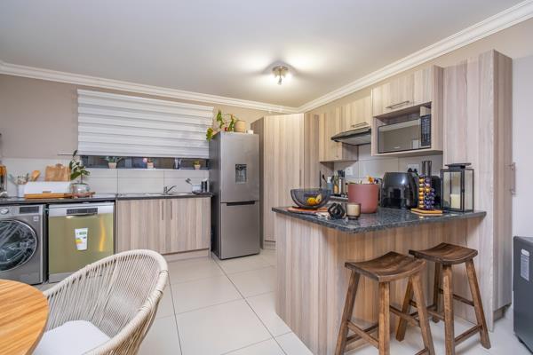 The kitchen is designed for convenience, offering space for two under-counter appliances, and the unit comes with pre-paid electricity and water. Fibre and DSTV-ready, the apartment is perfect for the connected lifestyle.