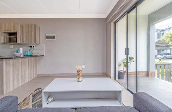 A large sliding door welcomes in natural light, making the home feel bright and airy while opening up to the outdoors.