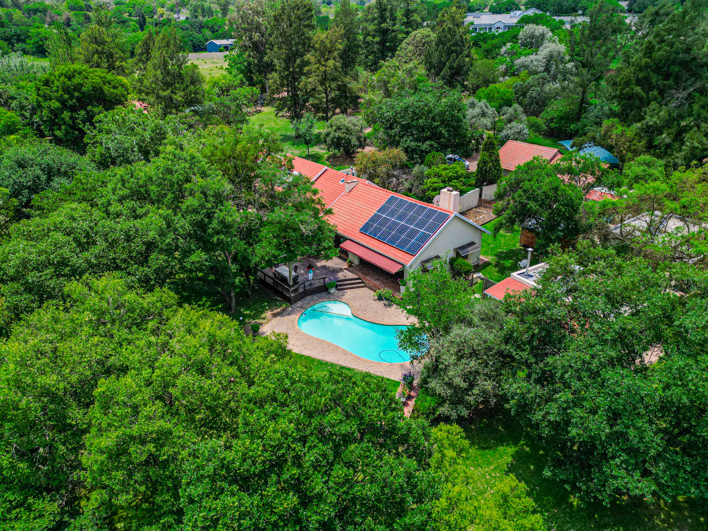 A rare find in the secure Chartwell North Estates, this 2.6-hectare property offers a tranquil country lifestyle with superb income-generating opportunities. The main residence (250m2) features 3 bedrooms, generous living spaces, a study, gas kitchen, verandah, and a sparkling 50,000L pool. Solar power, a borehole with storage, and multiple water systems ensure excellent off-grid capability.