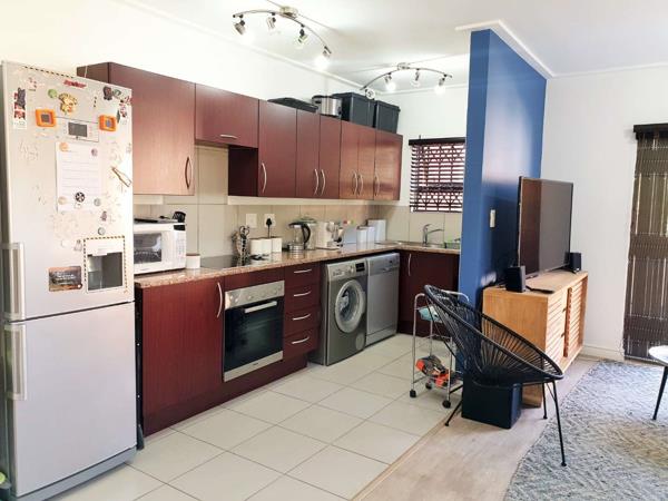 This modern first-floor apartment, perfectly suited for the busy executive seeking a lock-up and go lifestyle, offers two bedrooms and two bathrooms within a beautiful golf estate. The kitchen is thoughtfully designed with space for two water appliances and a fridge, featuring an undercounter oven and hob, granite countertops that complement the mahogany-finished veneer cabinets, and a modern open-plan layout flowing into the lounge and dining area. T