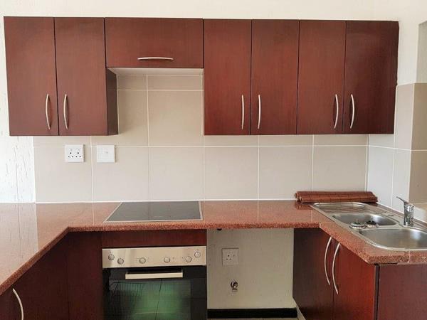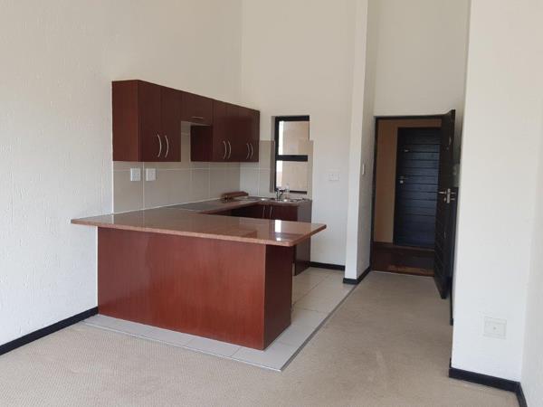 This sunny and bright first-floor, double-volume one-bedroom apartment offers the perfect blend of modern comfort and estate living. The open-plan kitchen features granite tops, a Miele oven and hob, space for a fridge and one appliance, and stylish cherry-stained veneer cabinets, flowing seamlessly into a carpeted lounge with soaring ceilings and large aluminium-framed picture windows. A sliding door leads to a balcony with tranquil garden views. The spacious bedroom, also double-volume and filled with natural light, includes built-in cupboards, while the bathroom offers a bath, basin, and toilet with modern wood and glass finishes. Extras include fibre-optic connectivity, satellite access, and pre-paid meters. The secure estate features lush communal gardens, a fenced swimming pool, clubhouse with restaurant and pub, gym, squash courts, walking trails, kids play areas, and an 18-hole golf course. Nova Primary School is on-site, with nearby shopping centres, medical facilities, gyms, and easy access to Fourways and Monte Casino. 24-hour guarded security, electric fencing, and CCTV ensure peace of mind. No pets allowed.