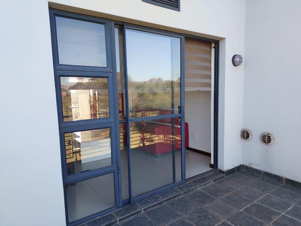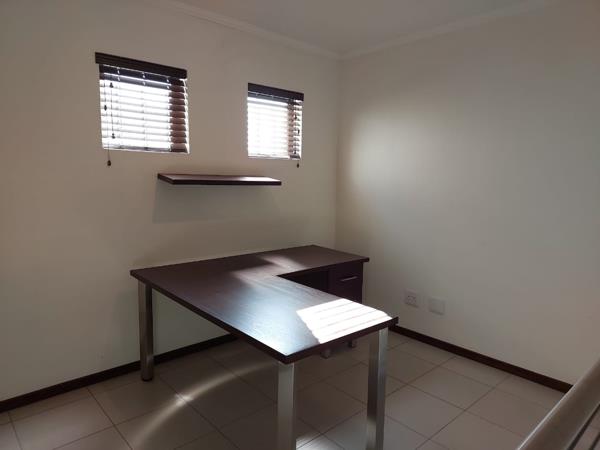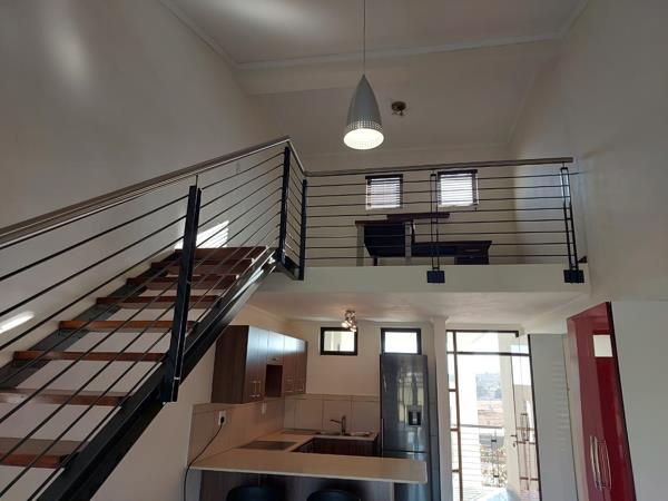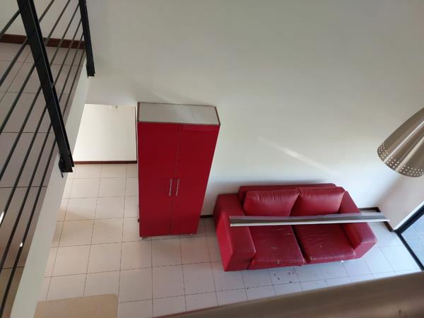 This first floor two-bedroom loft unit has an open plan tiled kitchen, lounge and dining room area with sliding door leading onto the balcony with spectacular views of the golf course and well-established indigenous gardens. The mahogany kitchen has black Caesarstone counter tops, Miele oven, double sink with Hansgrohe taps, space for one wet appliance and counter with seating space. The spacious carpeted bedrooms have ample cupboard space. The bathroom has been upgraded to a large shower with an extractor to remove the steam. Staircase leads to large, tiled loft area which can be used as a lounge or second bedroom. This is a rare find in the estate and a must view.