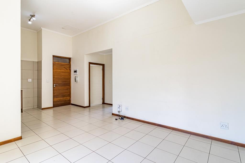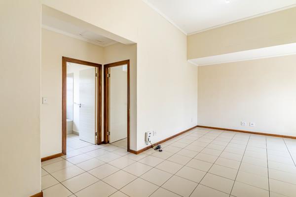 The open plan, tiled, lounge/living area with sliding door opens onto the patio with lovely garden views.