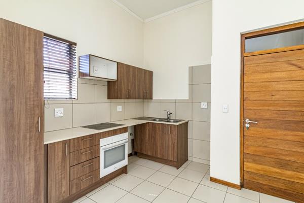 Open plan, tiled, kitchen has modern finishes with granite tops, space/plumbing for 1 appliance plus a fridge, and double sink.