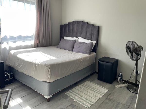 Ground floor apartment with views of the indigenous, well-established gardens from the patio. Spacious open plan tiled kitchen, dining room and lounge area.