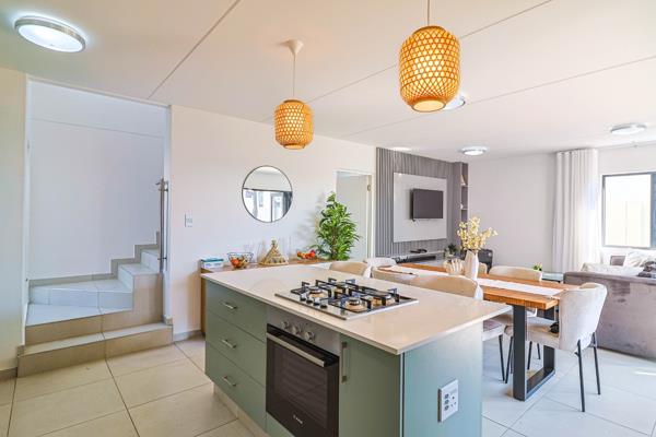 Ideal family home, for starting out in a safe and secure eco estate!! Entrance into open-plan kitchen and lounge/dining area, tiled floors with stack doors onto a private patio leading into a secluded fenced garden. Open-plan kitchen with caesarstone tops, Gas hob on island, space for double door fridge! Separate scullery with space 2 appliances and double sink. Guest loo.