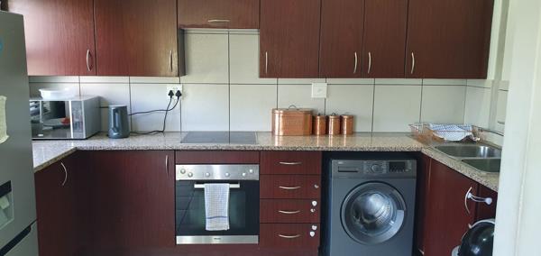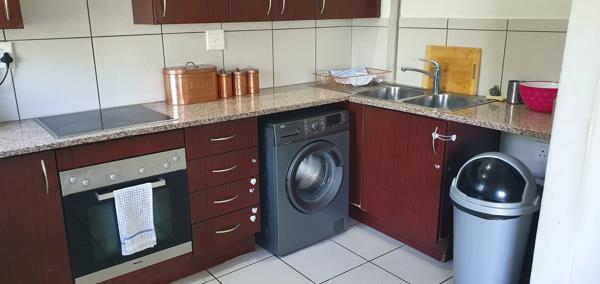 The spacious, airy lounge and dining area flow seamlessly onto a view patioideal for relaxing or entertaining while enjoying the natural surroundings. The open-plan fitted kitchen is well-designed and can accommodate two wet appliances, making it both practical and stylish.