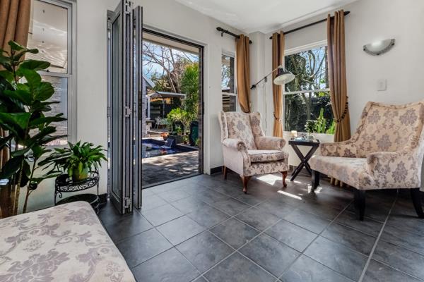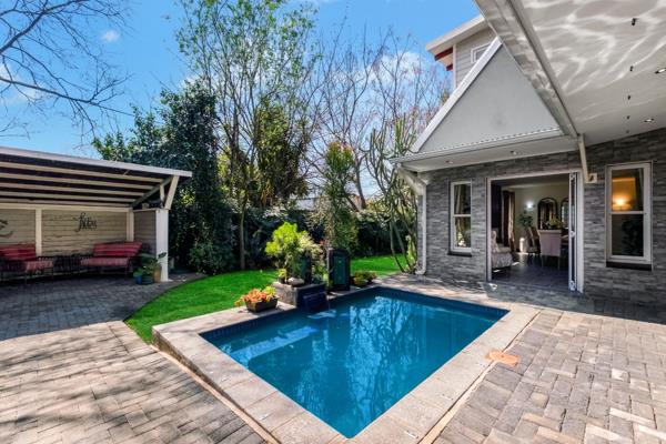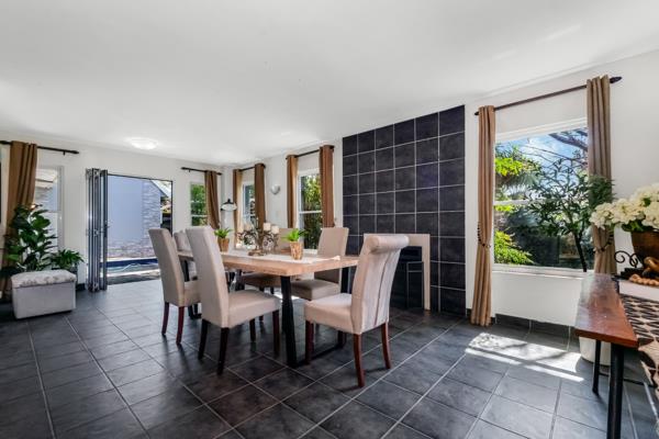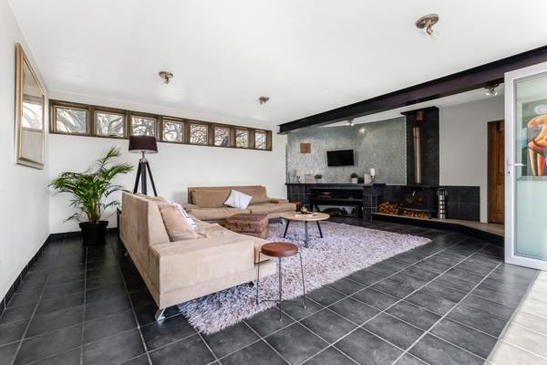 4 Bedroom Entertainment Home in Secure Gated Community- Follow the tree lined pathway to your front door and step into the spacious entrance hall. This home is about wide-open spaces and perfectly suited to an indoor/outdoor lifestyle. There are two large reception areas both with wood burning fireplaces. Stackable doors in both allow easy access to the garden and pool area. The Main lounge has a feature wall. The one reception could accommodate l-shape lounge and dinning room. The kitchen which is semi open and which can easily be opened up offers a gas stove and granite tops, hidden behind the wall (which could be removed) are all the appliances. Taking out the wall could double up with a dining room (additional reception) Downstairs are Two bedrooms and a Full Bathroom. Under the stairs is a storage area or ideal Wine Cellar.