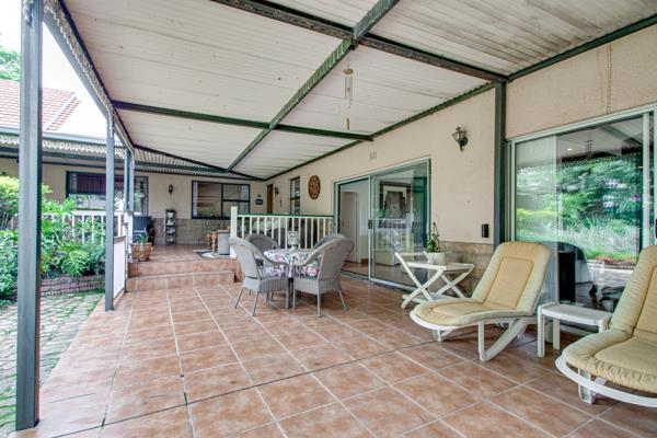 A charming 122m2 Brookie Lace wrap-around patio welcomes you, complete with a built-in braai and tranquil views over the sparkling poolperfect for year-round entertaining.