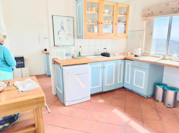 The main entrance into house is into a spacious entrance hall. To the left there is a large lounge with a fireplace and a sun room, both with large display windows to take in the view. Spacious Kitchen. There is also a large wine cellar. To the right of the entrance hall - 2 Bedrooms with a family bathroom, main Bedroom with bathroom en-suite and an adjacent office/study. At a lower level there is a self catering section with a Bedroom, Bathroom, Kitchen and laundry, It has its own access from outside. On the outside - terraced gardens with walkways and seating areas. Staff Cottage.