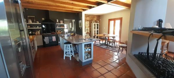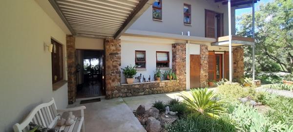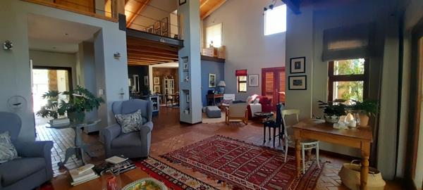 This classic, architect designed 2-storey house on top of a hill in the Crocodile River Reserve is full of character. Its style is Italian Chateau, timeless, calm, and stately. The house, cottage and offices are surrounded by lush, landscaped gardens. The interior is terracotta tiled throughout and the living area is open plan.