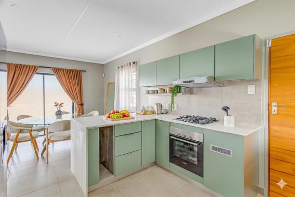 The home features 3 well-proportioned bedrooms, two and stylish bathrooms, and a sleek open-plan kitchen fitted with a gas stove and electric oven. As a full-title property, you enjoy complete ownership, with additional savings thanks to no transfer fees. The home also comes with pre-paid electricity and pre-paid water, offering full control over monthly expenses.