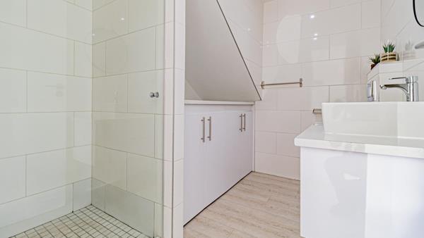 The open plan kitchen and Dining room has doors that opens to the outside, allowing a light breeze to flow into the house as well as heartwarming views , the kitchen has a built-in fridge and dishwasher, Gas hob and oven and ceaser stone counter tops. Next to the kitchen is the laundry room and the family lounge. The house has lights that can be dimmed and controlled using remote control and phone Apps which enables control even if your away from home .