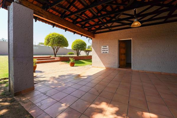 Tiling extends from the dining into the lounge and lobby. The lounge has a sliding door which leads onto covered patio with a braai area, overlooking a private garden. A linen cupboard is present in the lobby.