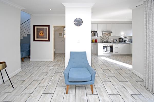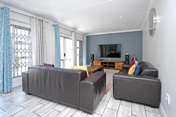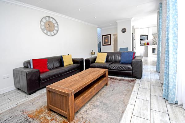 An ultra-modern secure home that offers 3 bedrooms, 2.5 bathrooms, open plan lounge dining room and kitchen, a chefs delight, which has a gas hob, oven, place for 3 under counter appliances and space for double door refrigerator with ample cupboard space. Lounge & dining room, with sliding doors leading to a covered patio, overlooking the garden. Downstairs guest loo