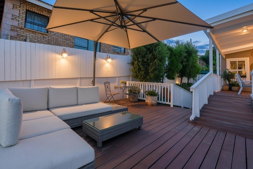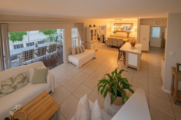A sparkling blue pool is set in a beautifully designed outdoor deck area, creating the perfect space for lounging and enjoying the South African sunshine. A lovely garden and a charming dollhouse complete the pictureperfect for children or as a unique garden feature.