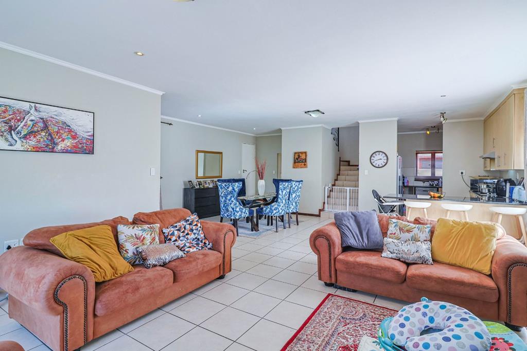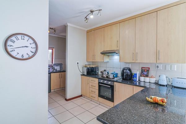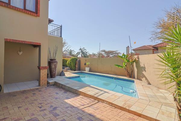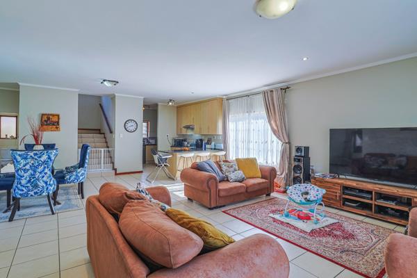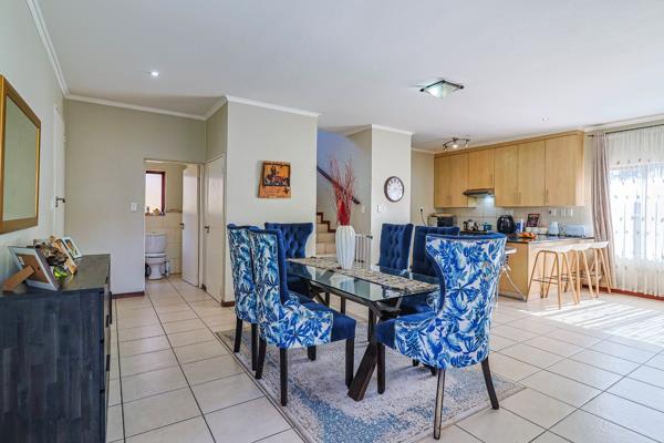 Formal entrance into spacious open plan living area , space for your 8 seater dining table, onto granite kitchen with scullery, pantry cupboard, and breakfast nook . Guest bathroom downstairs with store room. Covered patio onto enclosed garden with pool and pet friendly. Upstairs all bedrooms , well sized. Main bedroom with a full en-suite bathroom and balcony. The other bathroom serving the other 2 bedrooms also full . Double auto garage with direct access into the home. Security needs met with guardhouse and strict 24hr access control. Added bonus 5kva Inverter to stay (battery needs replacing) . Great value ! Be quick!