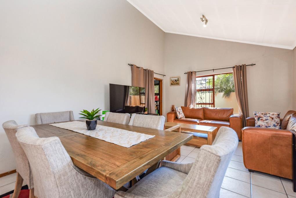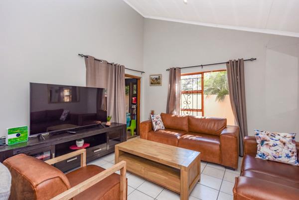 Family home with ample parking space. This immaculate 3-bedroom, 2-bathroom cluster home is set within a secure and well-maintained complex, offering a warm and practical living environment. The open-plan lounge and dining area flow effortlessly onto an enclosed patio with aluminium stacking doors, creating a versatile indoor-outdoor space ideal for entertaining or relaxing. The patio also features sliding door access into both the lounge and the third bedroom, which can double as a study or home office. The kitchen is well laid out and serves as the heart of the home. A fully tiled double garage adds exceptional value, featuring built-in storage shelving and a dedicated utility room with a sink, built-in cupboards, and plumbing for two under-counter appliances. To top it off, an inverter system ensures uninterrupted power during outages, making this home a comfortable and secure choice in a sought-after location.