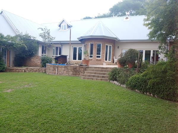 Large mansion with 4 bedrooms Main bedroom with fireplace for those cold winter nights 3 bathrooms dining room ,well fitted farm kitchen, study , loft room overlooking large Double volume lounge with bay windows looking out onto the entertainment area and large sparkling pool with rolling manicured lawns and a Koi pond.