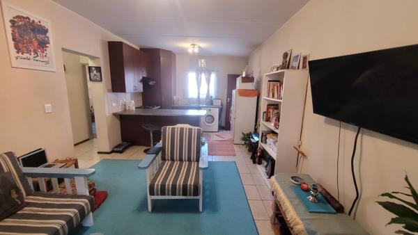 Warm and cozy lounge space leading to a spacious patio with a ready to braai fireplace for those winter or summer entertaining days.