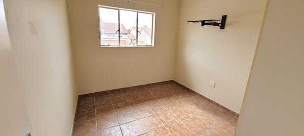 Spacious upstairs unit with open plan dining area and kitchen with plenty cupboard space and allows for undercounter appliances. Lounge opens onto a balcony, complete with built in braai. Main bedroom with en-suite bathroom. 2 additional bedrooms with an additional bathroom. Extra cupboards, fully tiled. 1 garage for the unit. The complex offers communal pool. Close to shopping centres, easy access to major roads and highways.
