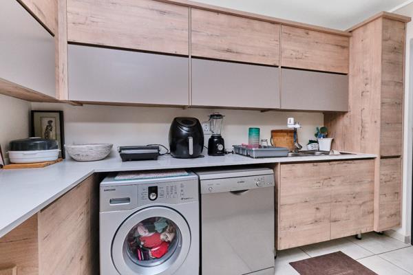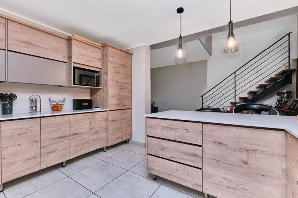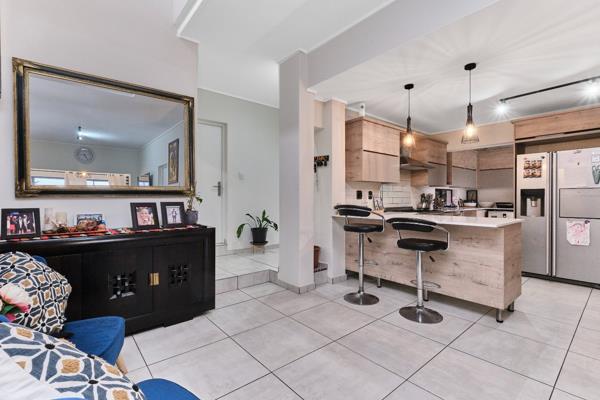 As you enter, you are welcomed by a stylish reception area that flows seamlessly into an open-plan lounge and dining area, ideal for family living and entertaining. The lounge opens out to a lush, well-maintained garden, perfect for relaxation or outdoor gatherings. The spacious kitchen is a chefs delight, featuring a scullery, ample cupboard space, three appliance connections, space for a double-door fridge, and a gas stove. A guest toilet and a generously sized bedroom complete the downstairs layout.